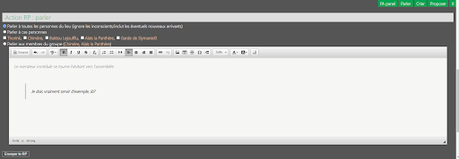 Des couleurs sont également accessibles pour personnaliser la force de vos message, que l’on poste via l’interface Rôle-Play: